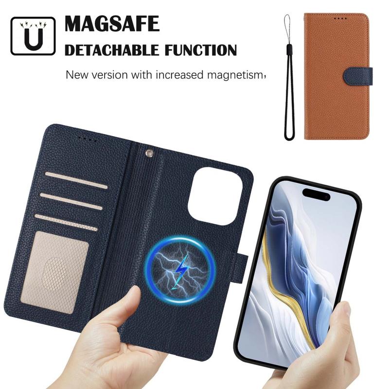 • Étui portefeuille détachable avec MagSafe, protection RFID et dragonne pour iPhone 16 Pro