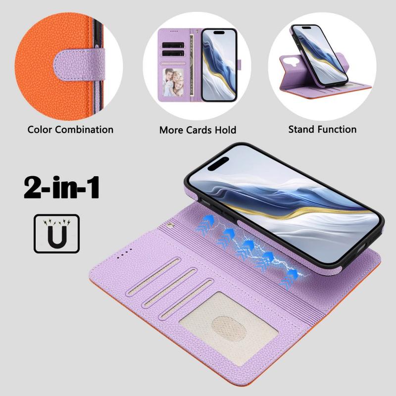 Profitez de la liberté d'un portefeuille détachable 2 en 1. Il comprend : 2 fentes pour cartes, 1 fente pour photos, 1 compartiment pour argent liquide.