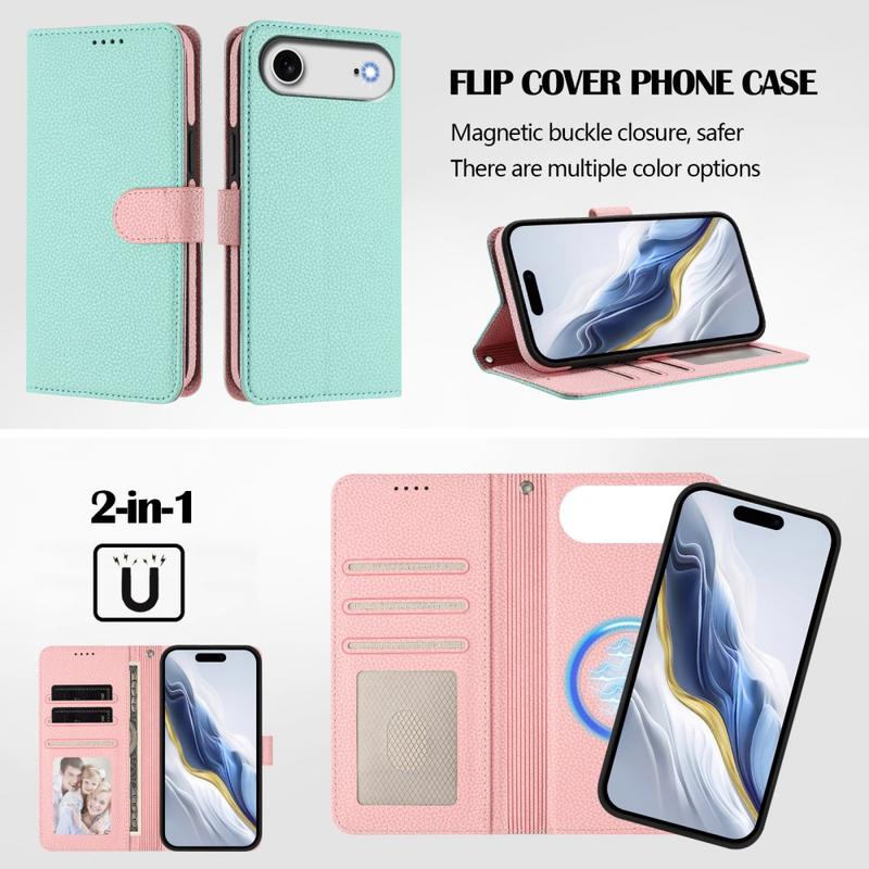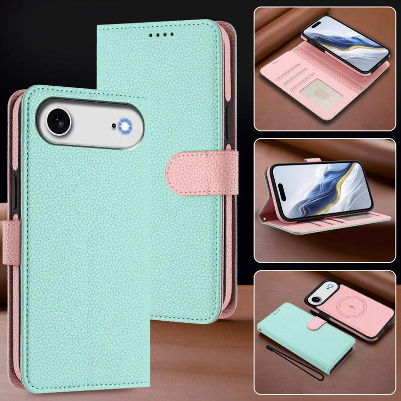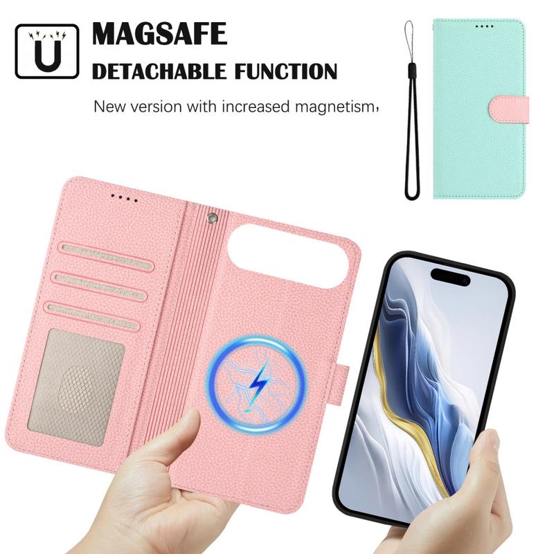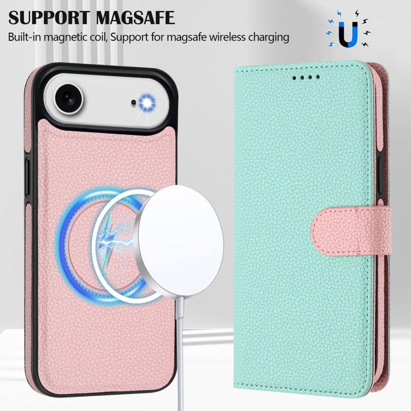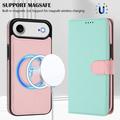 Étui portefeuille détachable iPhone Air avec MagSafe, protection RFID et dragonne - Menthe / Rose