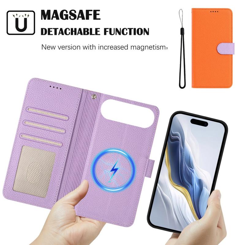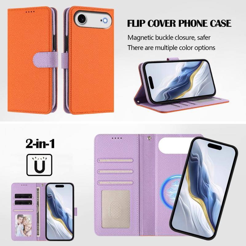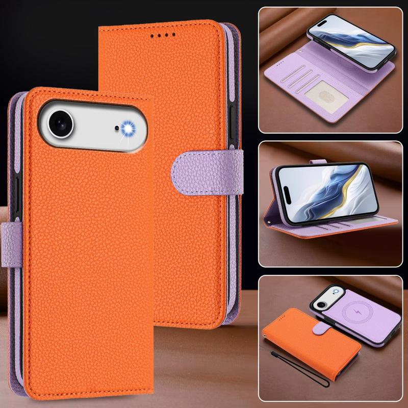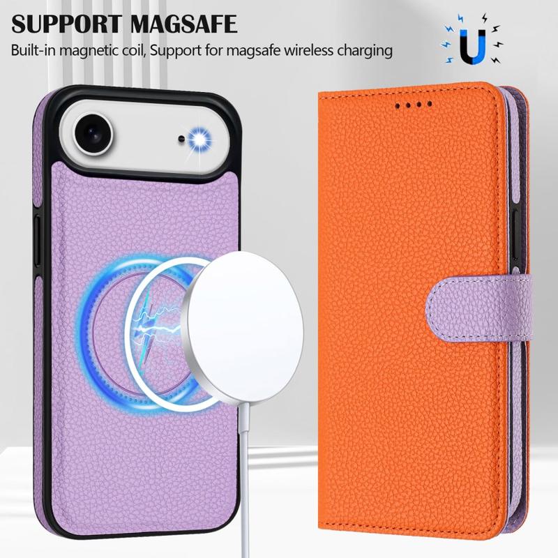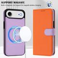 Étui portefeuille détachable iPhone Air avec MagSafe, protection RFID et dragonne - Orange / Violet