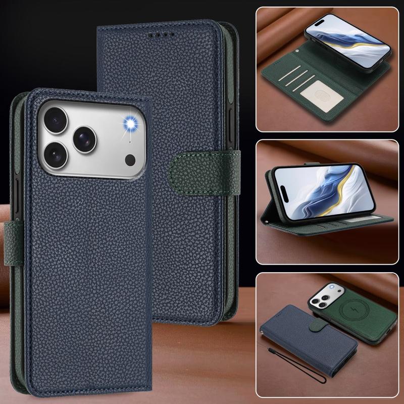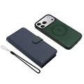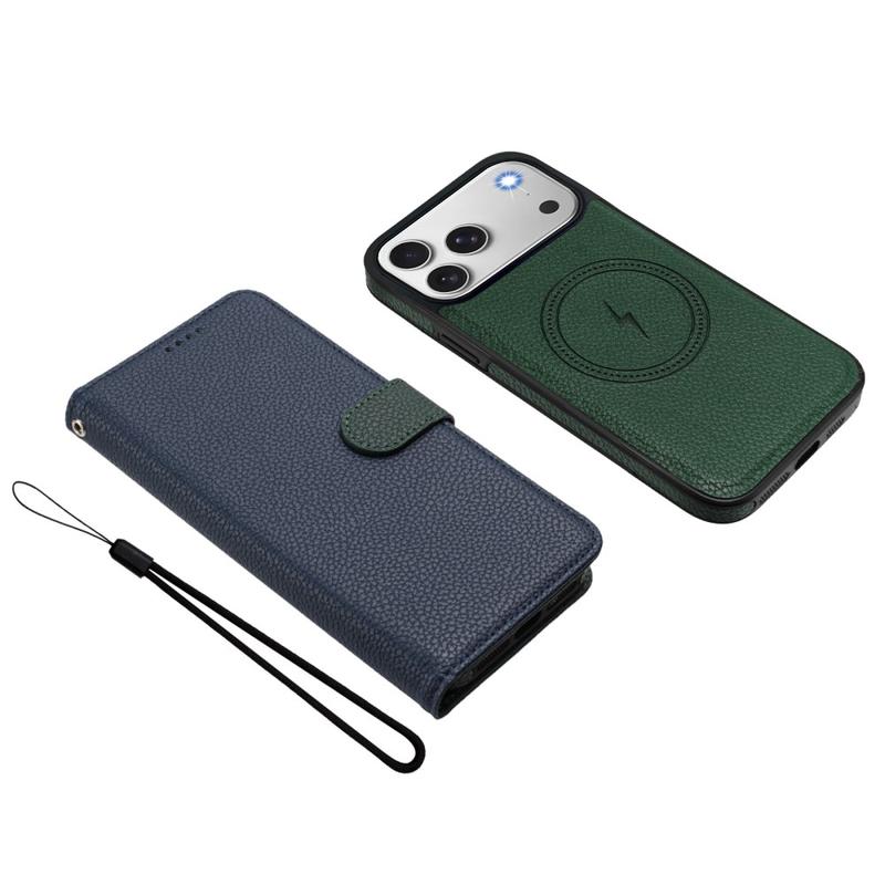 Étui portefeuille détachable iPhone 17 Pro Max avec MagSafe, protection RFID et dragonne - Bleu / Vert