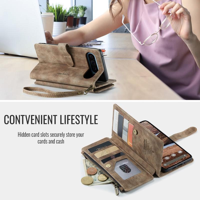 Étui Portefeuille Google Pixel 10 Pro XL Multifonctionnel Caseme C30 - Marron
