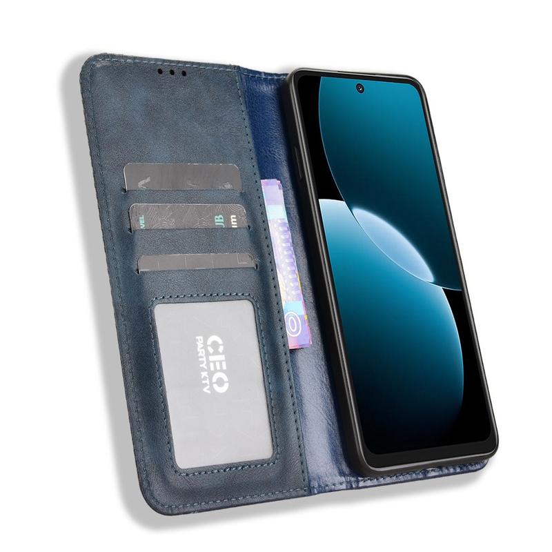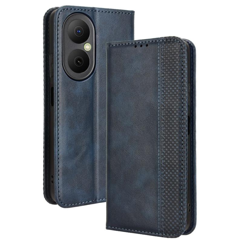 Étui Portefeuille Huawei Enjoy 80 avec Fermeture Magnétique - Rétro - Bleu