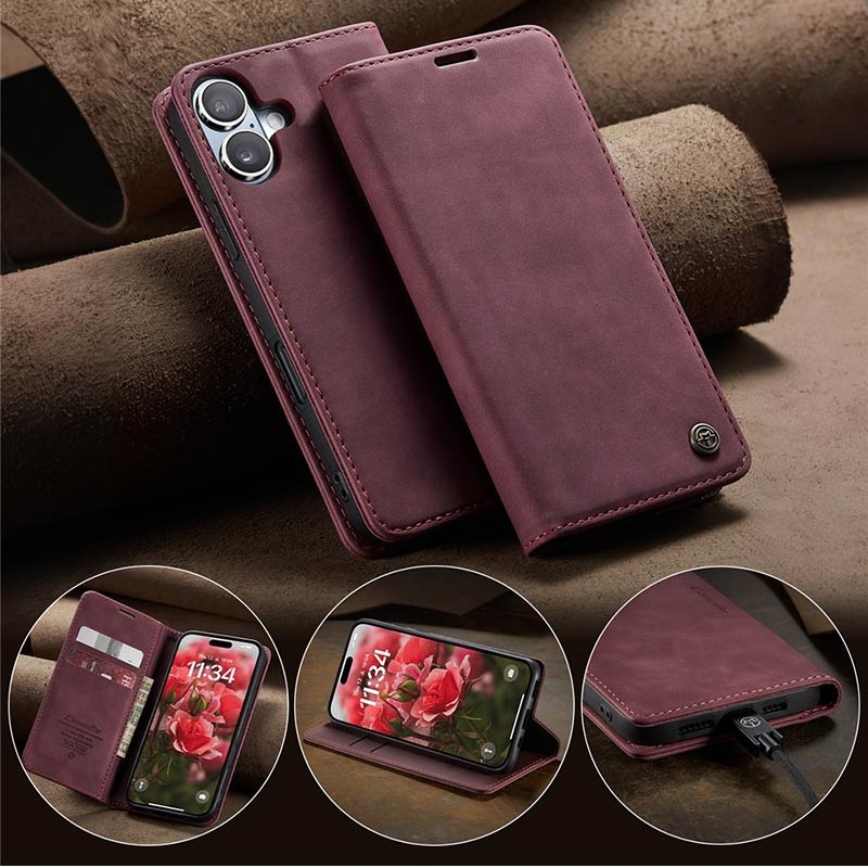 - Étui portefeuille de la série Caseme 013 pour votre précieux iPhone 16 Plus