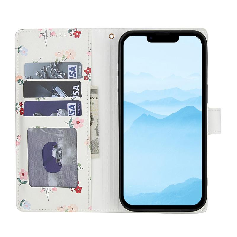 Étui portefeuille à motif floral rhombique pour iPhone 16e, iPhone 17e - avec dragonne et fentes pour cartes