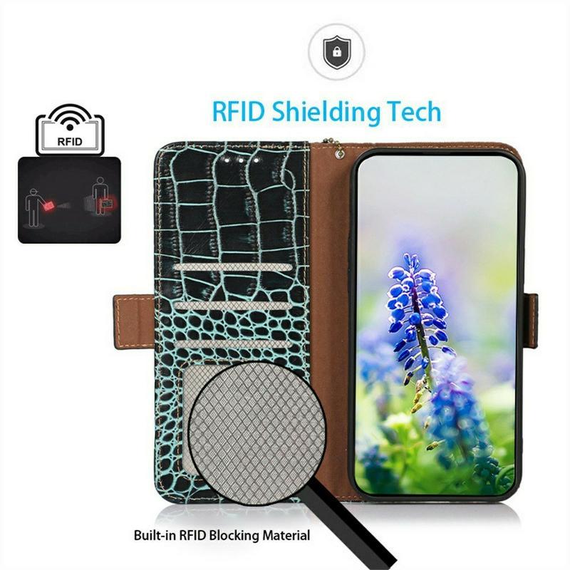 • Etui Portefeuille en Cuir avec RFID Série Crocodile pour iPhone Air