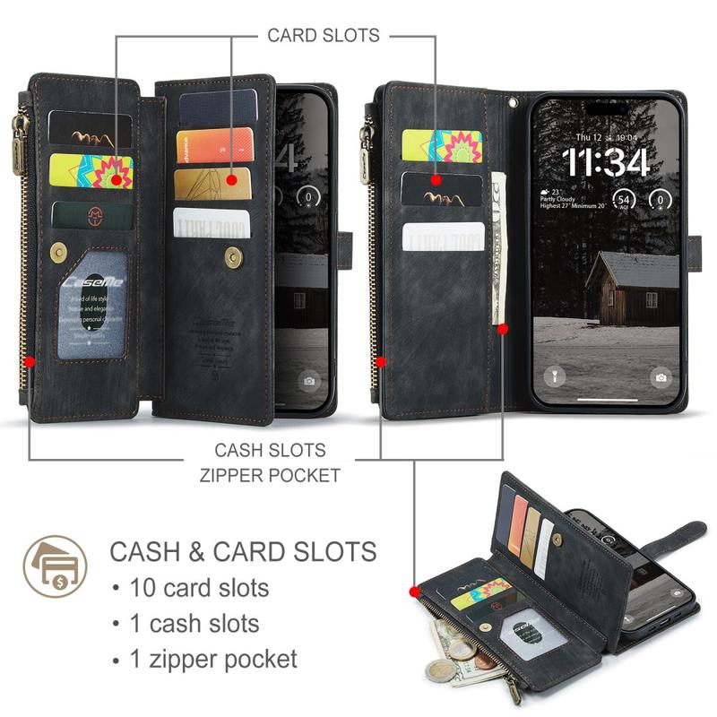L'étui portefeuille multifonction Caseme C30 pour iPhone Air apporte une protection complète exceptionnelle et un design exclusif et raffiné. Cette coque élégante est fabriquée en polyuréthane de qualité supérieure, renforcée par une coque intérieure en TPU résistant aux chocs qui épouse parfaitement votre iPhone Air. Pendant ce temps, l'étui portefeuille Caseme C30 est doté de nombreux emplacements pour cartes, d'un grand compartiment pour billets à l'intérieur et d'une poche extérieure zippée, le tout protégé par une fermeture magnétique sécurisée.
