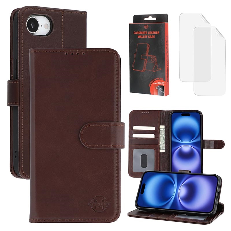 MyTPhone CardMate Premium étui portefeuille en cuir pour iPhone 17e - Stand, porte-cartes, recharge sans fil, 2 protections d'écran