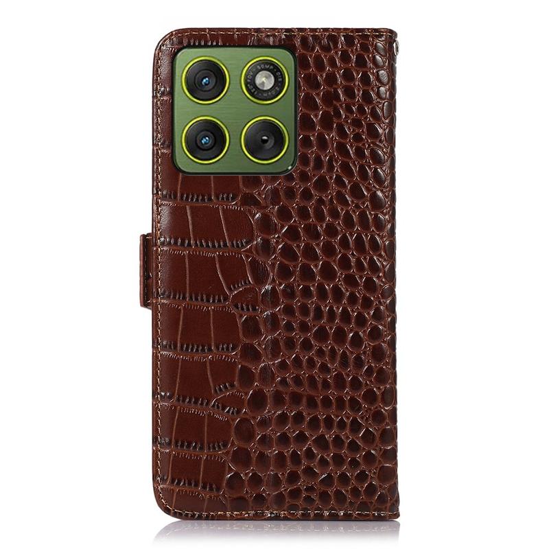 Étui Portefeuille Motorola Edge 70 en Cuir avec RFID - Série Crocodile - Marron