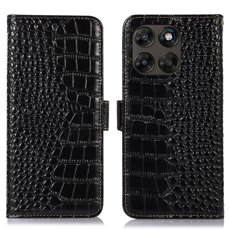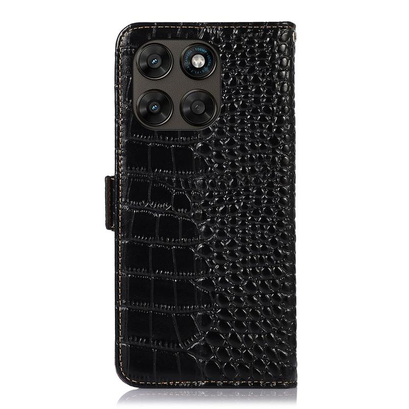 - Étui en cuir de portefeuille de la série Crocodile pour Motorola Moto G77, Moto G67