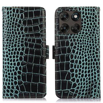 Étui Portefeuille Motorola Moto G77/G67 en Cuir avec RFID - Série Crocodile - Vert