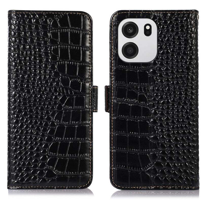 Étui Portefeuille OnePlus Turbo 6/6V en Cuir avec RFID - Série Crocodile - Noir