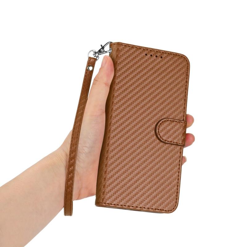 Etui portefeuille premium Samsung Galaxy S26 Ultra avec sangle - Texture fibre de carbone - Café au carbone