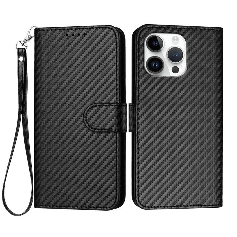 Etui portefeuille premium iPhone 16 Pro Max avec sangle - Texture fibre de carbone