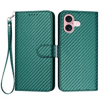 Etui portefeuille premium iPhone 16 avec sangle - Texture fibre de carbone - Vert carbone
