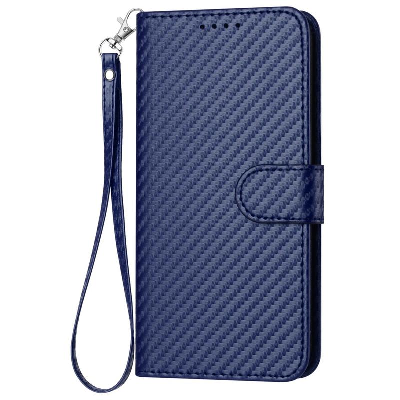 • Etui portefeuille premium avec sangle pour iPhone 15 Pro - Texture fibre de carbone