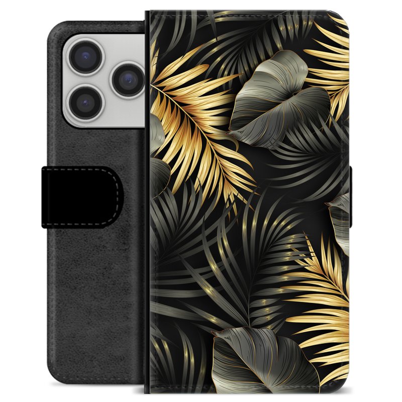 Étui Portefeuille Premium iPhone 17 Pro - Feuilles Dorées