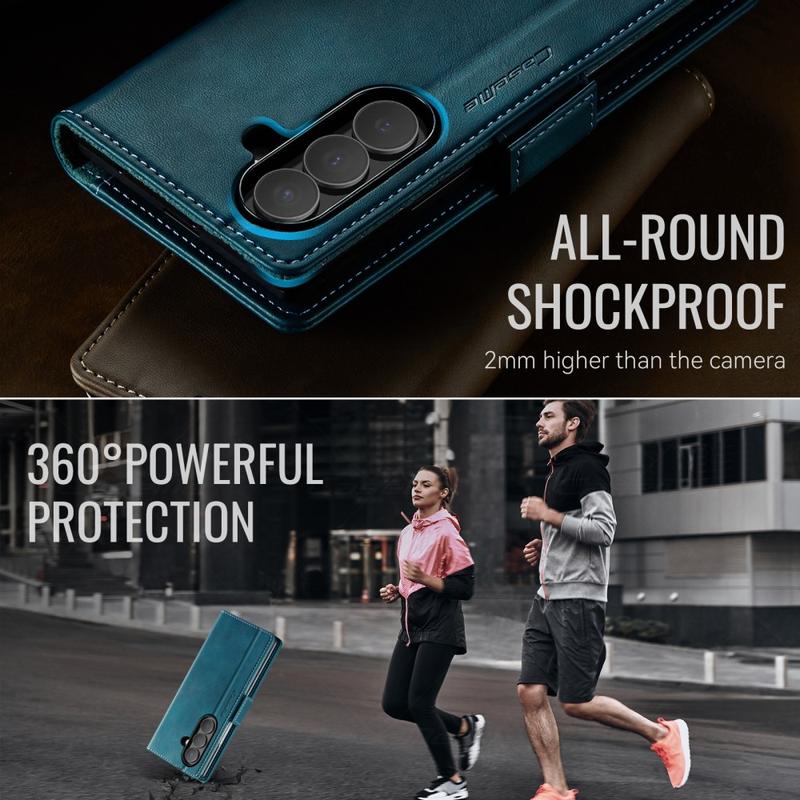 L'étui CASEME 033 Series Wallet Case pour Samsung Galaxy Z Fold7 est fabriqué en polyuréthane texture veau combiné à du TPU, offrant une protection intégrale contre les rayures, les chocs et l'usure quotidienne tout en conservant un aspect premium et élégant.