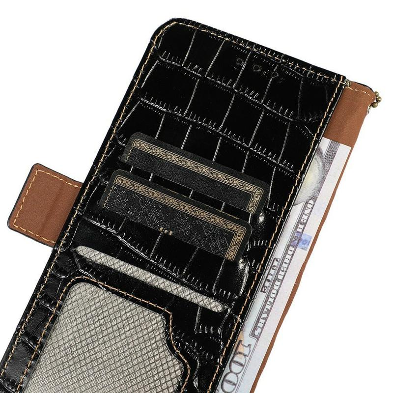 Un boîtier de portefeuille léger et doux avec une texture de crocodile unique, le choix parfait pour protéger votre Samsung Galaxy A27 et le garder en bon état. Il est composé de cuir véritable de haute qualité et de matériau TPU intérieur, conçu avec trois emplacements de carte, un emplacement d'identification et une poche pour l'argent, idéal pour transporter vos éléments essentiels à côté de votre Samsung Galaxy A27. De plus, la technologie RFID bloque efficacement les signaux et maintient vos données sécurisées.