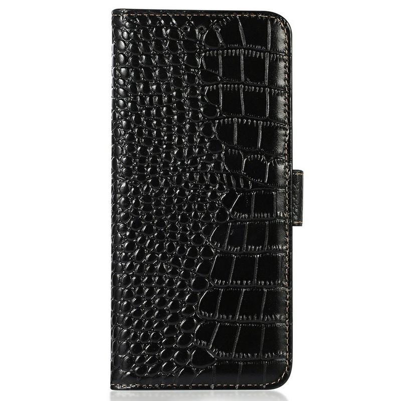 Étui Portefeuille Samsung Galaxy A27 en Cuir avec RFID - Série Crocodile