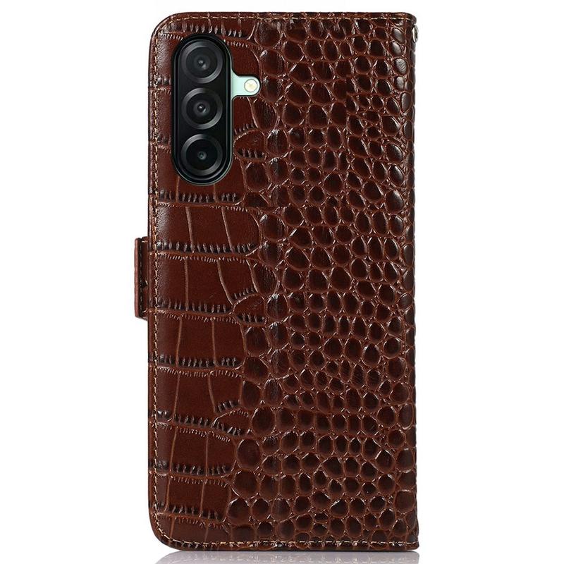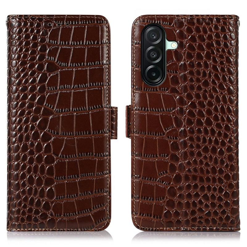 Étui Portefeuille Samsung Galaxy A27 en Cuir avec RFID - Série Crocodile - Marron