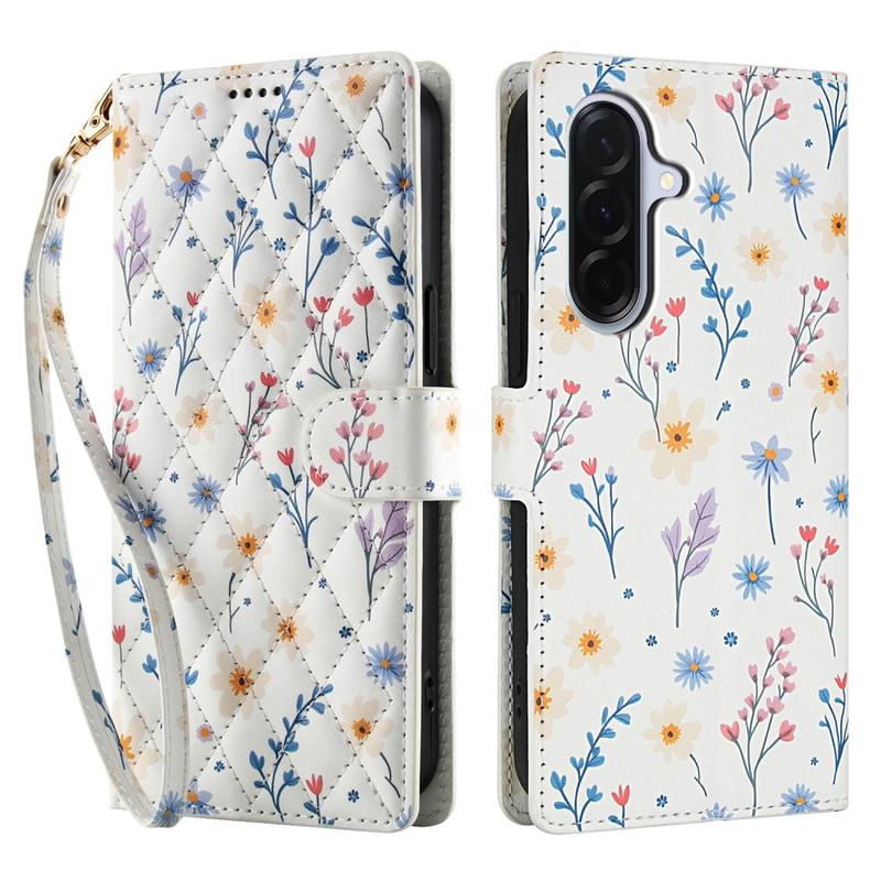 • Étui portefeuille à motif floral rhombique pour Samsung Galaxy A57 - avec dragonne et fentes pour cartes