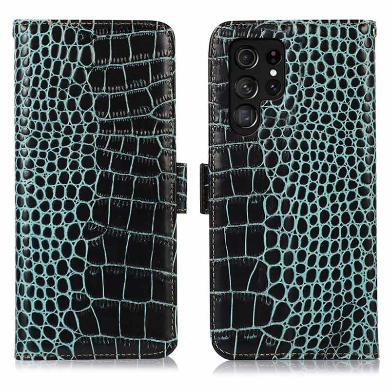 • Etui Portefeuille en Cuir avec RFID Série Crocodile pour Samsung Galaxy S26 Ultra
