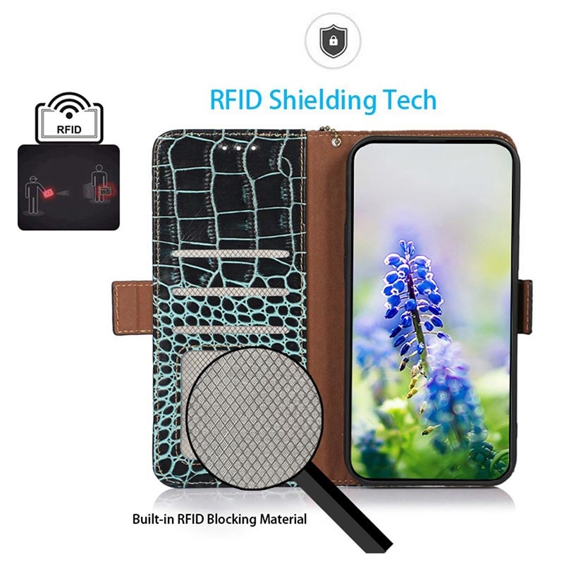Un boîtier de portefeuille léger et doux avec une texture de crocodile unique, le choix parfait pour protéger votre Samsung Galaxy S26 Ultra et le garder en bon état. Il est composé de cuir véritable de haute qualité et de matériau TPU intérieur, conçu avec trois emplacements de carte, un emplacement d'identification et une poche pour l'argent, idéal pour transporter vos éléments essentiels à côté de votre Samsung Galaxy S26 Ultra. De plus, la technologie RFID bloque efficacement les signaux et maintient vos données sécurisées.