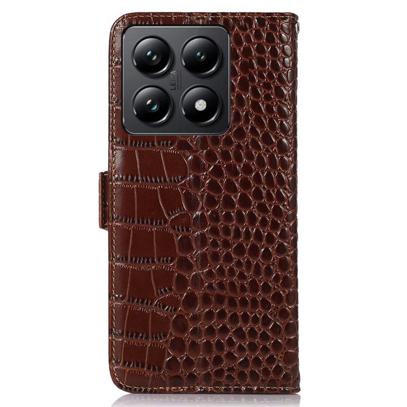 Étui Portefeuille Xiaomi 14T Pro en Cuir avec RFID - Série Crocodile - Marron