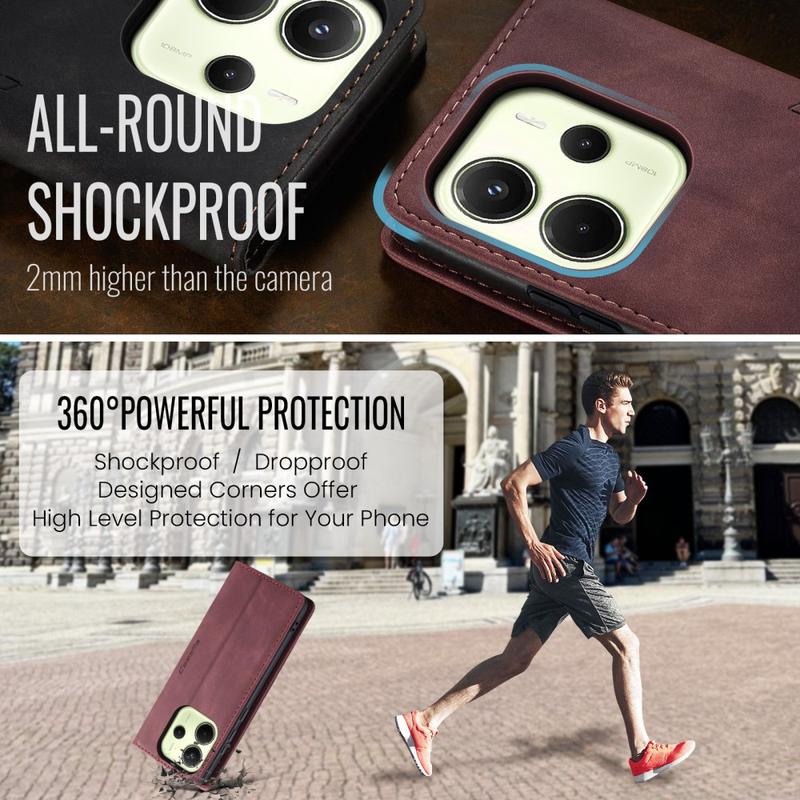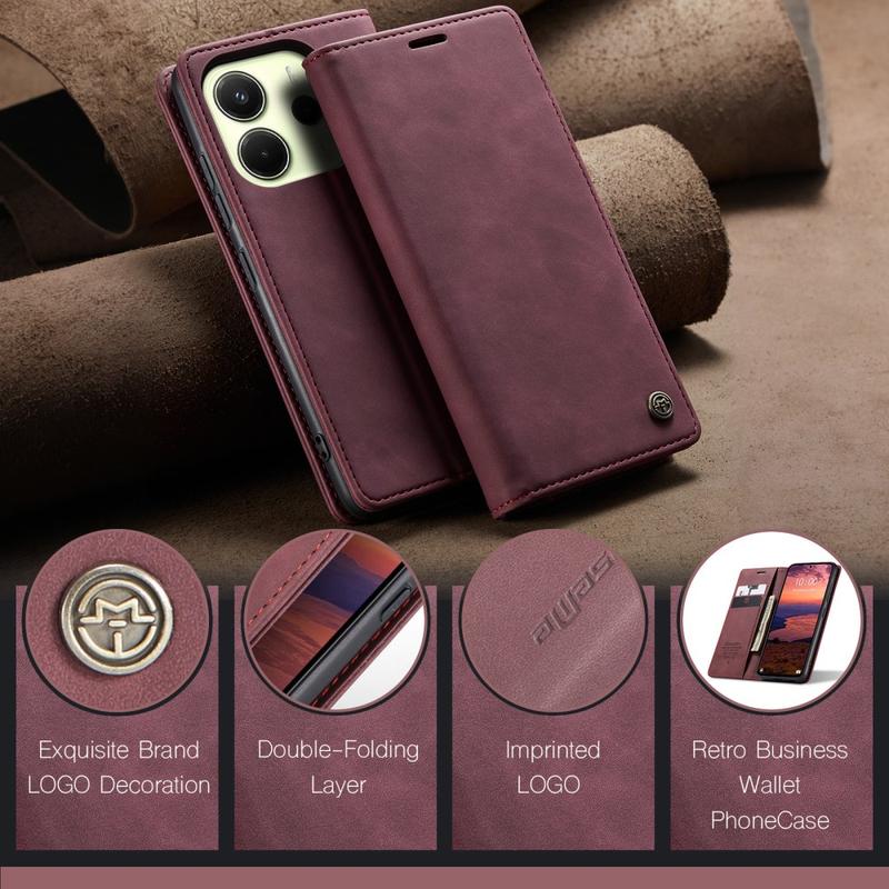 Étui Portefeuille Xiaomi Redmi Note 14 4G Caseme Série 013 - Bordeaux