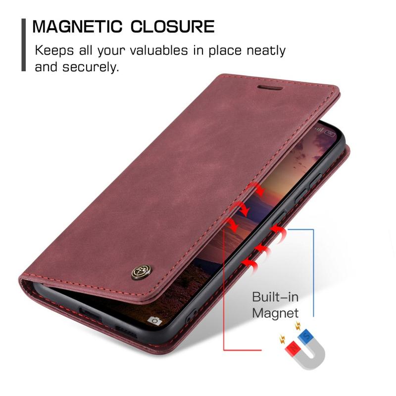 - Les aimants intégrés maintiennent l'étui portefeuille de la série Caseme 013 fermé