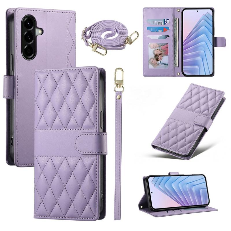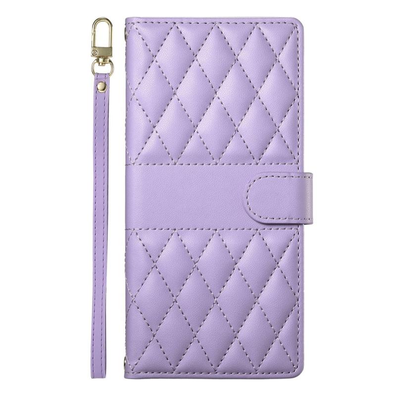Étui de luxe matelassée avec bandoulière et poignet pour Samsung Galaxy A37 - Étui protectrice à motif en losange
