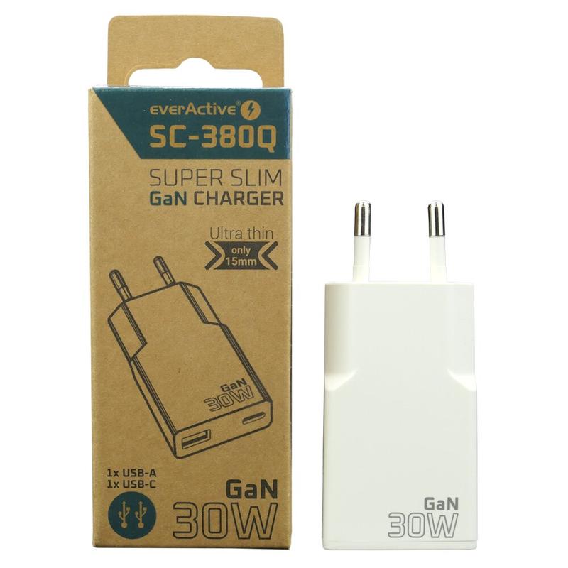 everActive SC-380Q GaN Chargeur mural super mince 30W avec ports USB QC3.0 et USB-C PD