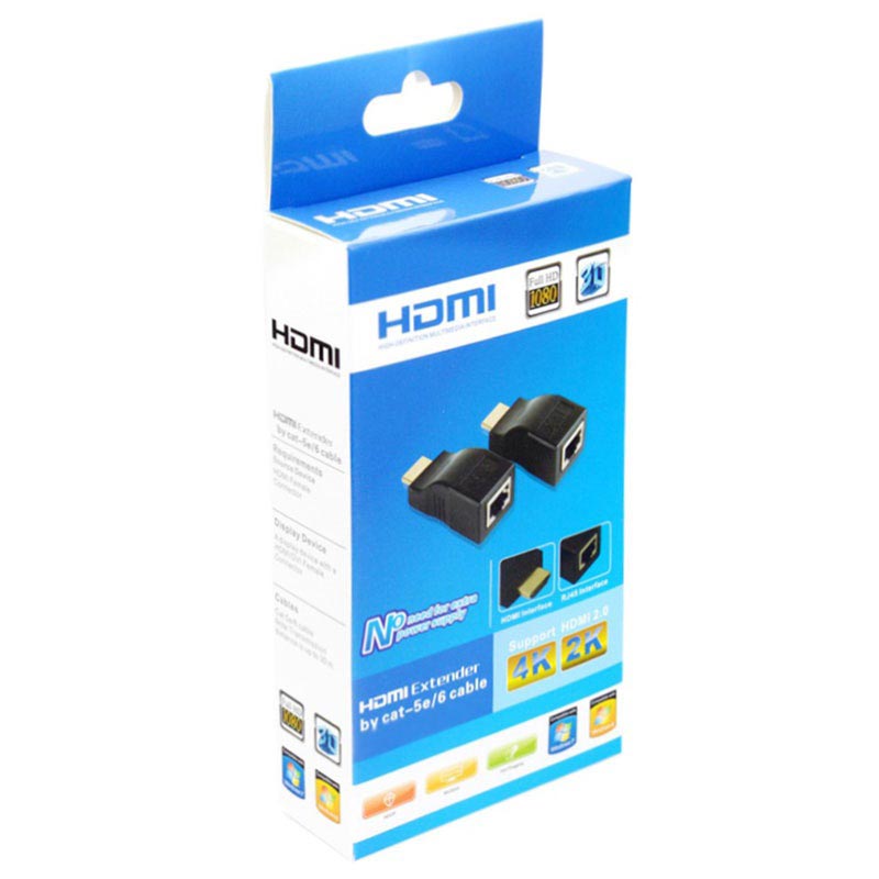 • Cet extendeur HD-208 RJ45 vers HDMI de qualité vous offre la possibilité d'étendre les signaux HDMI jusqu'à 30 mètres à l'aide de câbles réseau Cat5e ou Cat6. Il est livré avec un émetteur (TX) et un récepteur (RX) avec interface HDMI mâle vers RJ45 femelle. Il suffit de brancher l'émetteur dans un appareil qui partage le signal, puis brancher le récepteur dans l'appareil qui recevra le signal et de les connecter avec votre propre câble LAN.