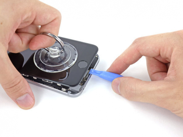 • Si vous n'avez pas un iSclack ou vous ne voulez pas l'utiliser, vous pouvez utiliser une seule ventouse pour enlever le panneau avant du reste de votre iPhone.