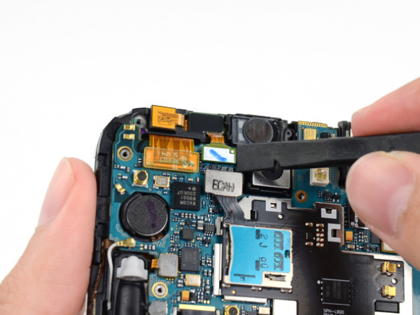 Utilisez un outil d'ouverture en plastique pour soulever la batterie de la coque. Vous devez insérer l'outil dans le creux au-dessus de la batterie pour le faire.