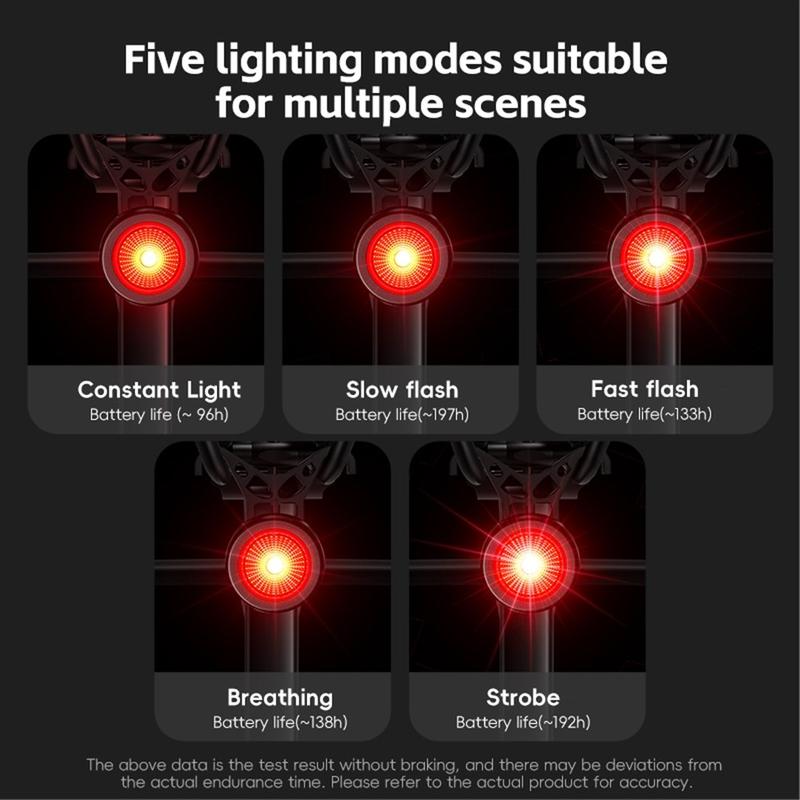 Ce feu arrière intelligent est idéal pour les cyclistes qui souhaitent bénéficier d'une visibilité arrière fiable sans avoir à le recharger fréquemment. La fonction de feu stop automatique améliore la sécurité dans la circulation, tandis que le capteur de mouvement permet de prolonger la durée de vie de la batterie. Léger et facile à installer, il offre une solution de sécurité pratique pour les cyclistes urbains et les cyclistes du week-end.