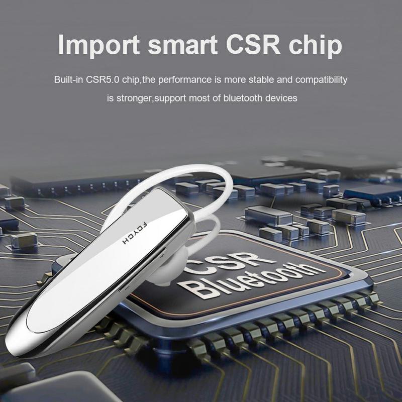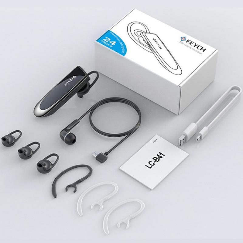 Feych Casque Bluetooth à une oreille (Bluetooth 5.0) - Réduction du bruit CVC 6.0, connexion à deux appareils, autonomie de 24 heures