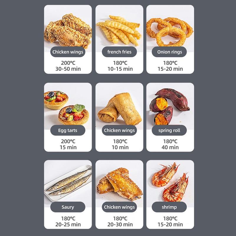 Équipée d'un système de chauffage rapide de 1500 W, la friteuse à air fournit une distribution uniforme de la chaleur pour des résultats toujours croustillants et tendres, avec peu ou pas d'huile. Grâce à sa capacité multifonctionnelle, elle est parfaite pour frire, cuire au four, griller et rôtir. La fenêtre de visualisation intégrée vous permet de surveiller la progression de la cuisson sans ouvrir le panier, ce qui préserve la chaleur et améliore l'efficacité.