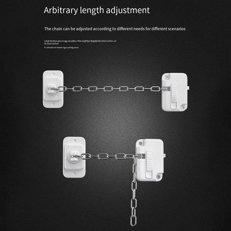 FT756 Serrure de tiroir et de fenêtre à chaîne réglable - Verrou de sécurité pour enfants et animaux domestiques avec installation sans perçage