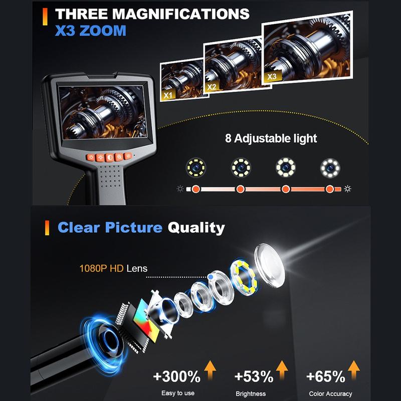 Équipé d'une caméra de 8 mm de diamètre et de 8 éclairages LED réglables, cet endoscope garantit une excellente visibilité dans les environnements sombres, étroits ou complexes. Idéal pour l'inspection mécanique, la plomberie, le diagnostic automobile et l'entretien de la maison.
