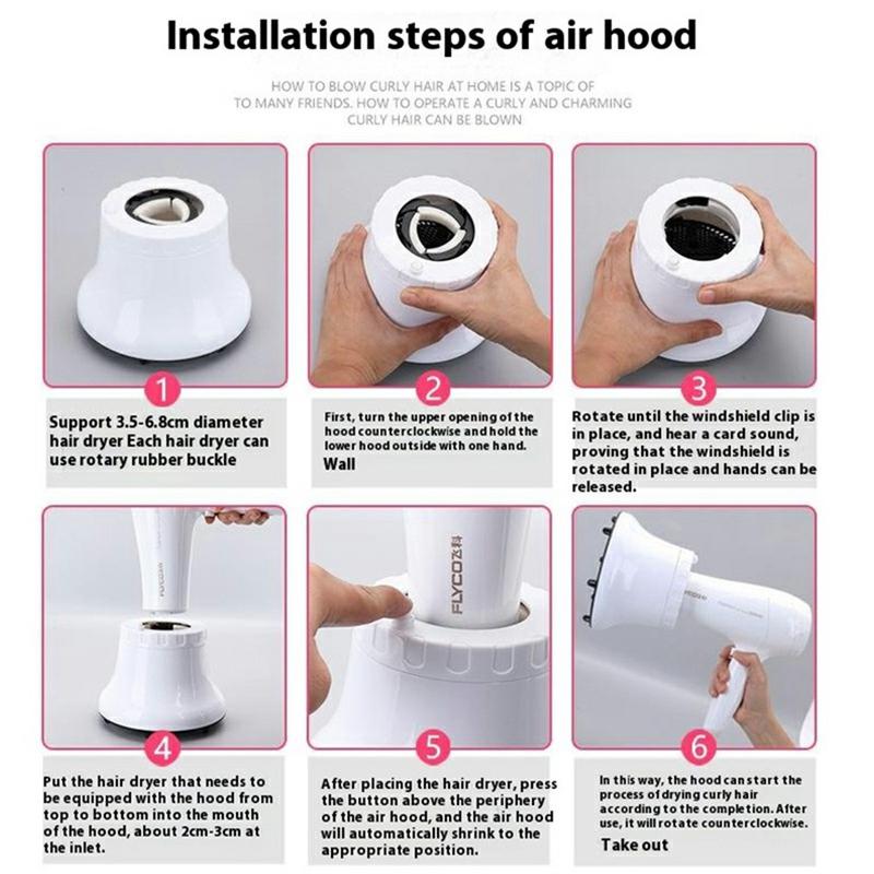 - Adaptation universelle aux buses de sèche-cheveux de 3,5 à 6,8 cm