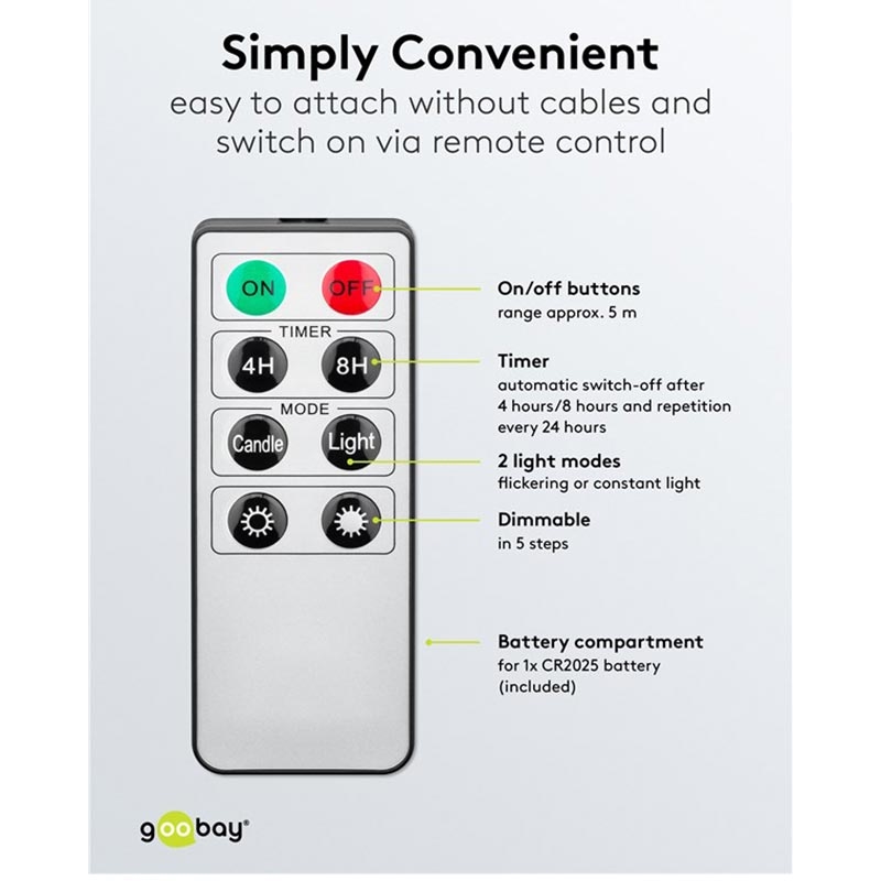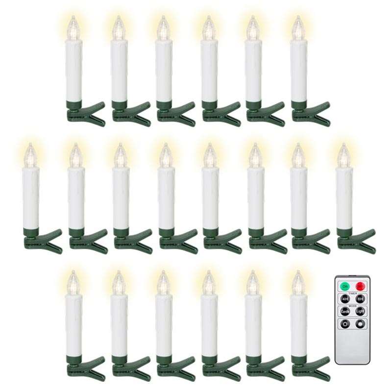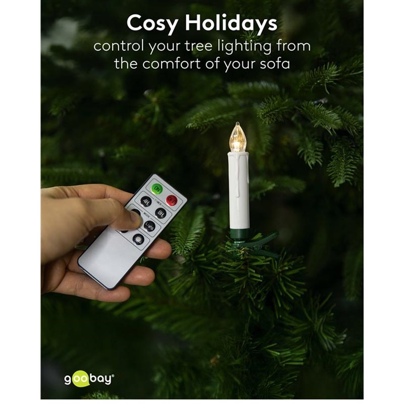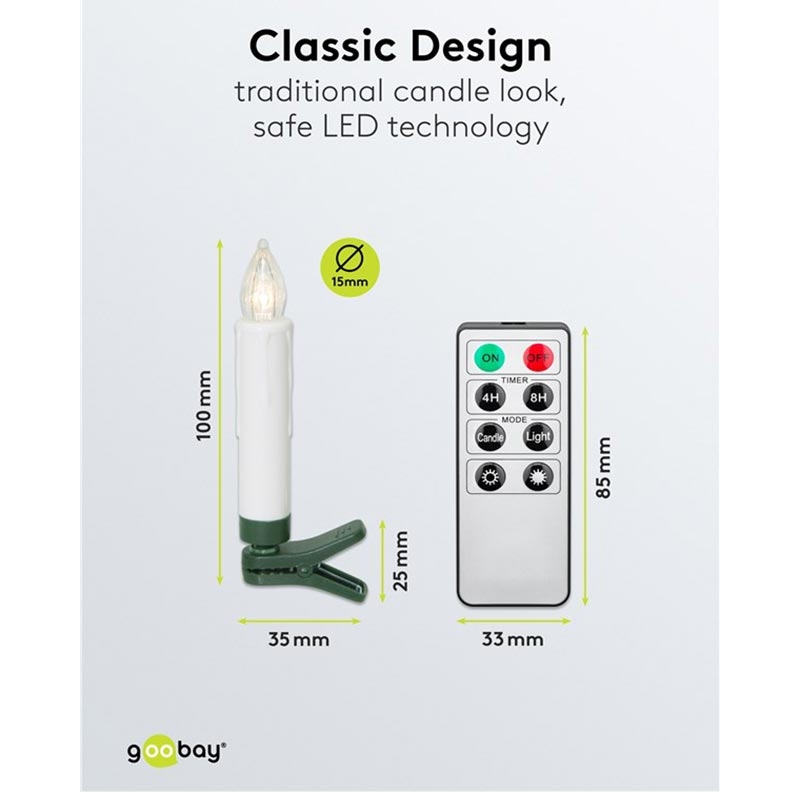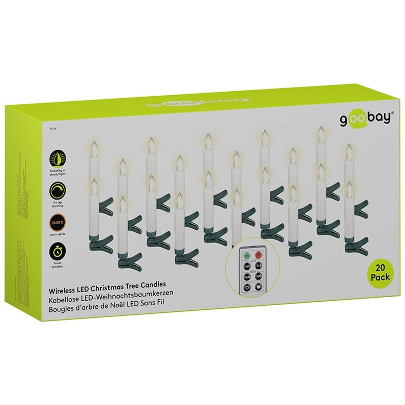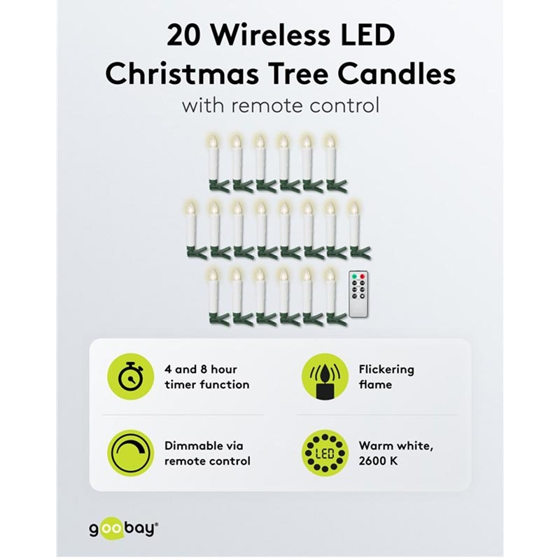 Goobay Set de bougies de Noël LED sans fil - 20 bougies à intensité variable avec pinces, télécommande et minuterie (2600 K)