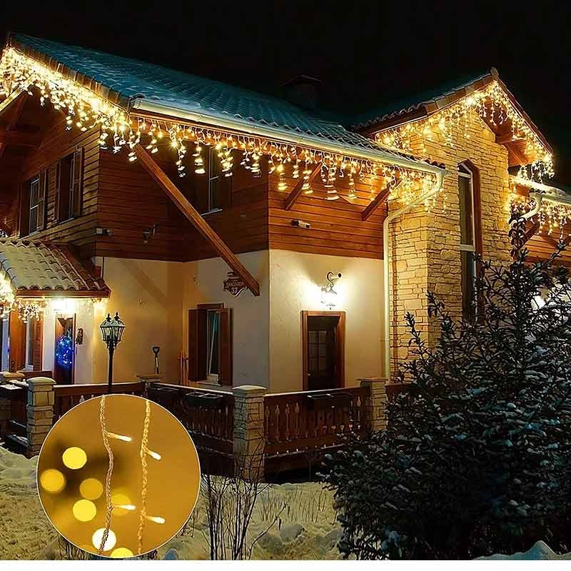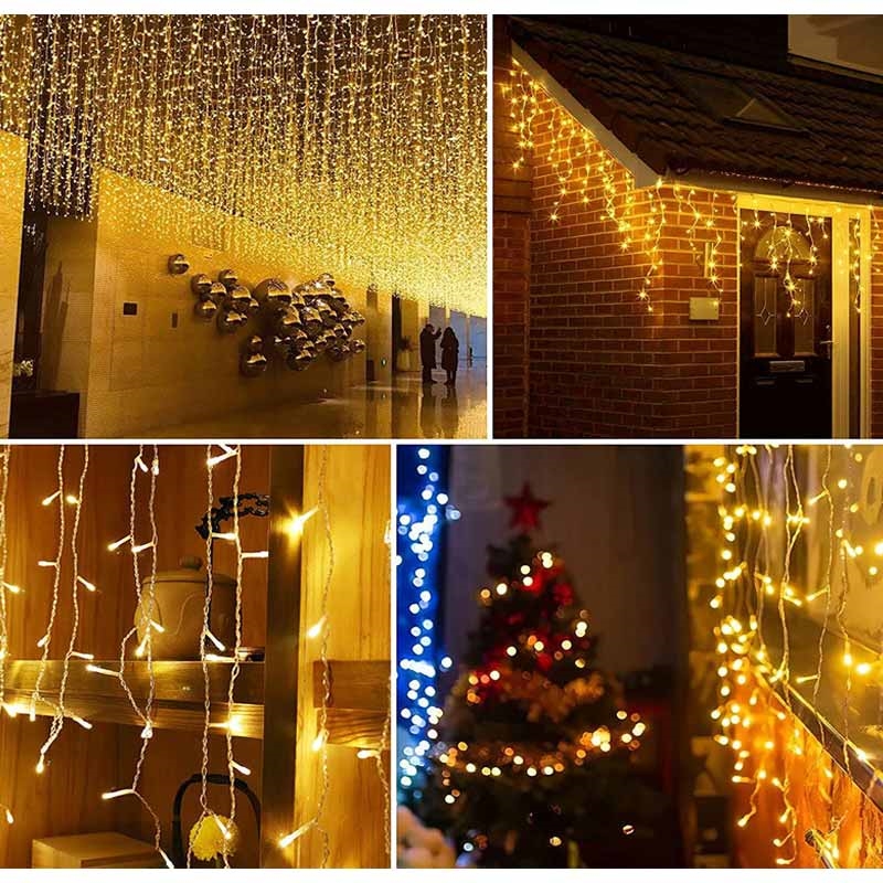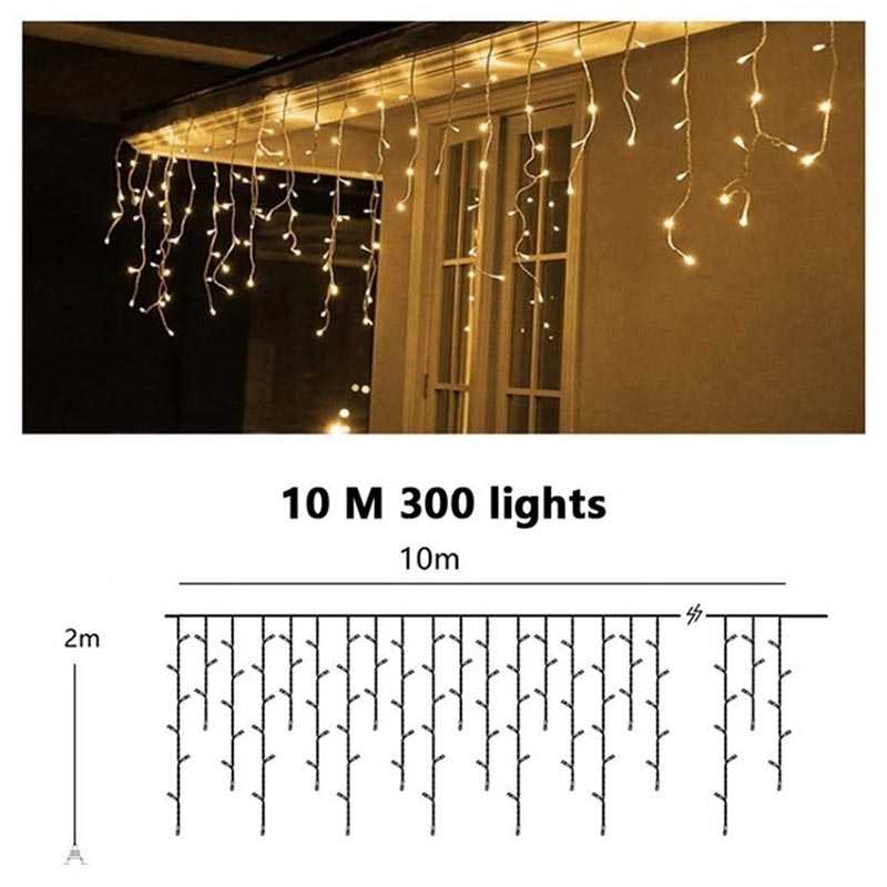 - Rideau en forme de cascade avec 300 LED blanc chaud pour une lumière douce et accueillante.