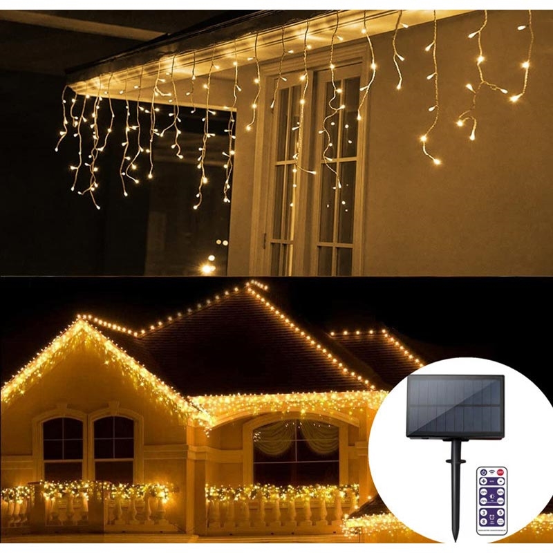 Guirlande de rideaux solaires 10m - 300 LED cascade de lumières féeriques avec télécommande, IP55