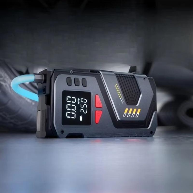 - Outil d'urgence tout-en-un - Combine les fonctions de démarreur de secours, de gonfleur de pneus, de jauge de pression numérique, de lampe SOS et de lampe de poche en un seul appareil portable.