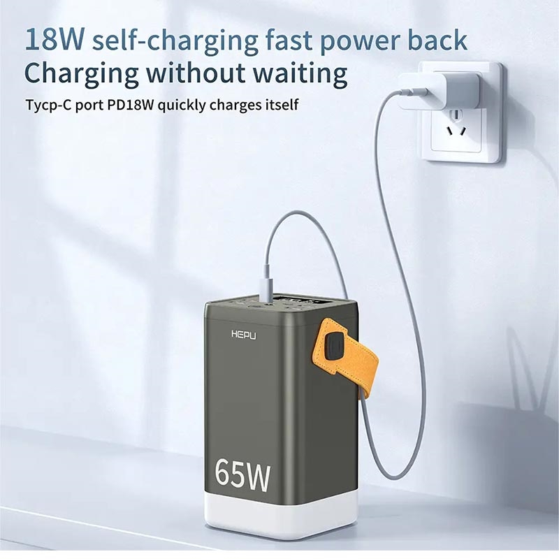Le HEPU XXL HP211 est un énorme banc d'alimentation de 60000mAh conçu pour les utilisateurs qui ont besoin de plusieurs ports de charge et d'une capacité durable. Avec quatre ports USB-A, deux ports USB-C PD et un port DC, il peut alimenter plusieurs appareils à la fois, y compris les smartphones, les tablettes et les petits ordinateurs portables. Bien qu'il promette une charge rapide de 65 W sur le papier, ses performances conviennent mieux aux utilisateurs qui privilégient la capacité à la vitesse.