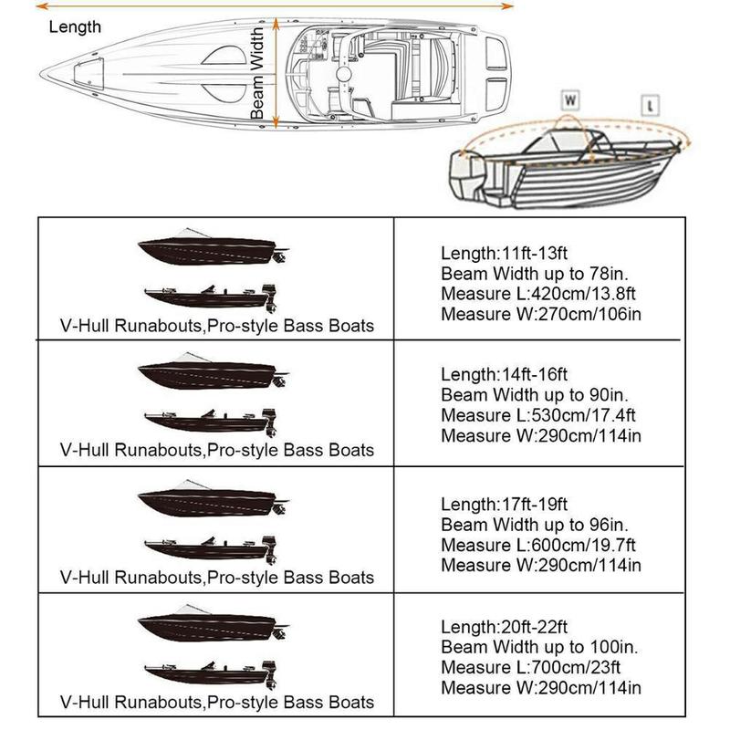 Housse imperméable 210D pour bateaux 14-16 ft (530 x 290cm) - Housse de protection contre le soleil et les intempéries enduite de PU avec sangles et boucles réglables et sac de rangement