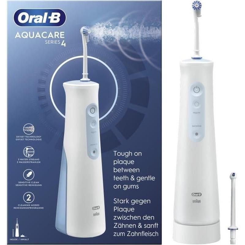 Si vous recherchez un hydropulseur sans fil doté de modes de nettoyage réglables, de la technologie Oxyjet à microbulles et d'une grande facilité d'utilisation au quotidien, l'Oral-B AquaCare 4 est un excellent choix. Il permet un soin bucco-dentaire plus précis, plus confortable et plus efficace au quotidien.