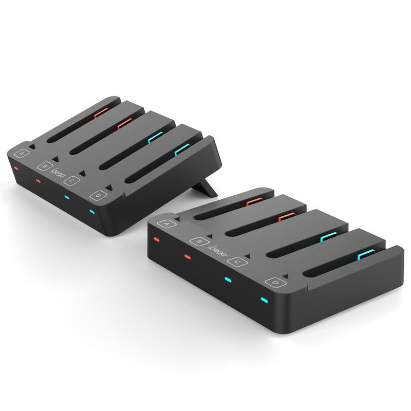 - Indicateurs d'état LED : Des indicateurs de charge en temps réel pour chaque emplacement indiquent si les manettes sont en cours de charge ou entièrement alimentées.
